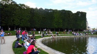 The document lists places visited in Paris including gardens, districts, landmarks, and museums such as the Tuileries Gardens, Defense district, Saint Martin Canal, Seine River, Champs-Elysees, Louvre Museum, Latin Quarter, Montmartre Square, Panoramas Passage, Grand Palais, Luxembourg Garden, Bridge of Arts, and Choiseul Passage. It also provides a link to French accordion music.
