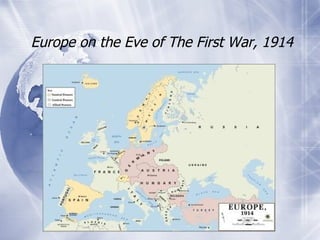 The document discusses the key issues and leaders at the Paris Peace Conference in 1919 following World War I. The "Big Four" leaders - Lloyd George, Orlando, Clemenceau, and Wilson - had to address reparations, restrictions on Germany to prevent future wars, redrawing borders to satisfy ethnic groups like the Poles and Serbs, and how to resolve international conflicts and prevent future alliances that could lead to war. Advisors to the delegates were tasked with prioritizing their nation's priorities on these issues and determining what they would be willing to compromise to achieve security and prosperity goals.