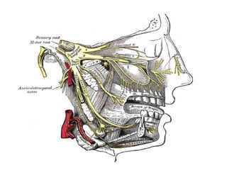 The document provides an overview of the anatomy of the parotid gland and submandibular gland. It discusses: