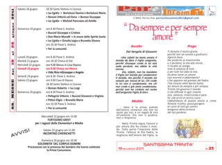 Il documento descrive gli eventi religiosi e le messe in programma presso varie chiese, con particolare riferimento alle celebrazioni della comunità cristiana tra il 18 e il 26 giugno 2011. Inoltre, narra una storia toccante di una bambina che desidera regalare un collier alla sorella in assenza della madre, evidenziando l'amore e il sacrificio. Infine, si fa riferimento ai valori di amore e redenzione presenti nel Vangelo, con un invito alla misericordia divina.