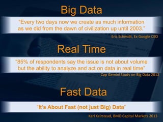The document discusses the importance of real-time analytics in big data, highlighting that businesses must analyze and act on data quickly to survive in a competitive environment. It details various applications across industries including fraud prevention, campaign management, and predictive maintenance, demonstrating the need for new technologies that support immediate data availability and interactive analytics. Parstream is presented as a high-performance solution for real-time data processing, capable of handling billions of records with ultra-fast querying capabilities.