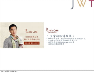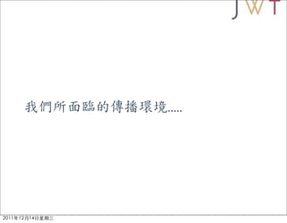 This document discusses JWT's philosophy of engaging consumers through creative advertising. It notes that today consumers do not want ads that interrupt their lives, but rather want creative content they can engage with. The document then outlines JWT's "TIME Philosophy" which is about helping consumers spend more time engaging with brands. It also provides statistics showing that online video ads have higher recall, brand recall, message recall and likability than television ads. The rest of the document appears to be discussing a potential viral video campaign for a client, including execution timing and estimated costs.