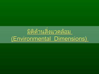 ที่ไม่ทำาให้ เกิดความสิ้นเปลืองทรัพยากรหรือก่อให้เกิด มิติด้านสิ่งแวดล้อมมิติด้านสิ่งแวดล้อม