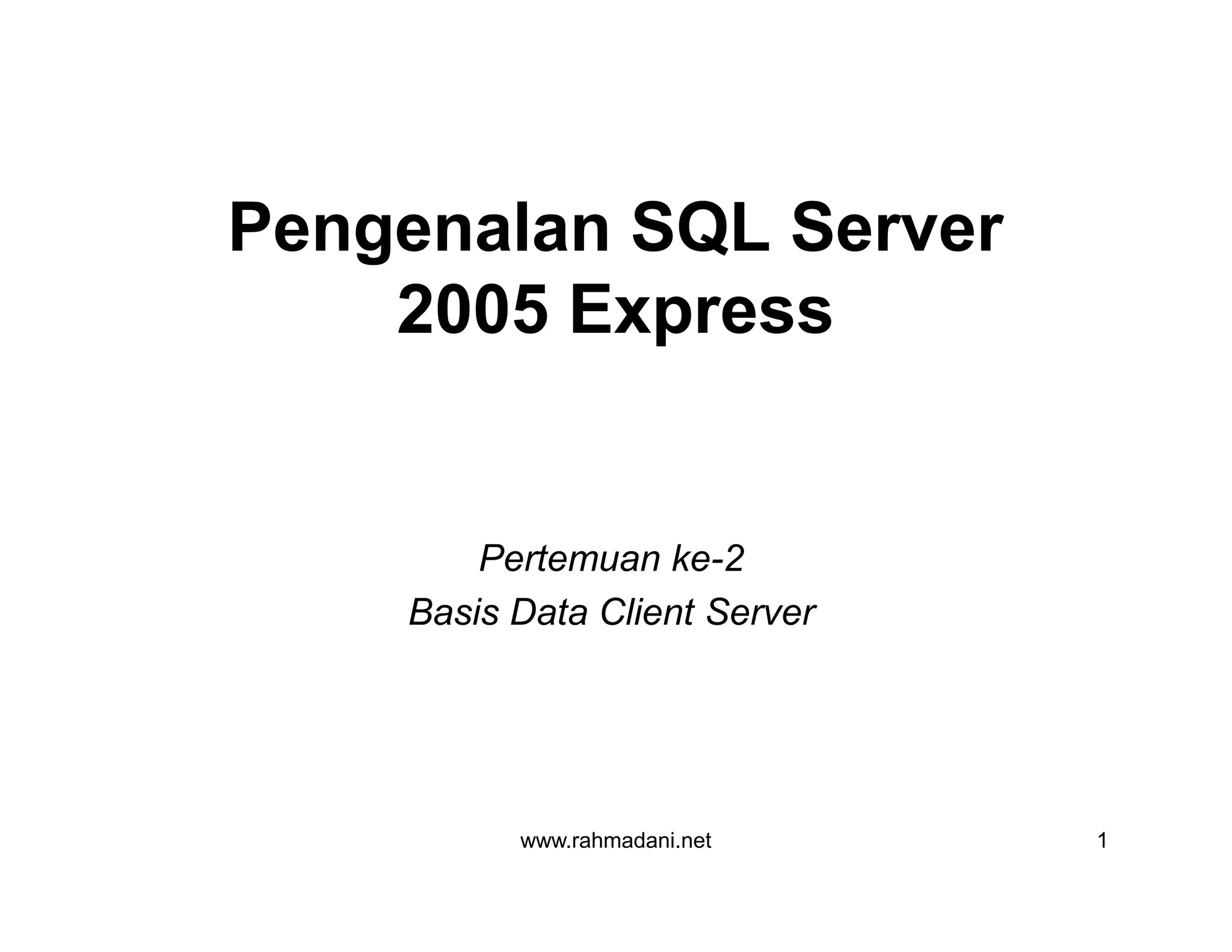 Dokumen tersebut membahas pengenalan SQL Server 2005 Express, termasuk fitur-fiturnya dan cara instalasi. SQL Server 2005 Express merupakan DBMS yang memungkinkan pengelolaan data dari beberapa komputer dalam jaringan. Dokumen ini juga menjelaskan bagaimana SQL Server dapat digunakan untuk menyimpan dan mengelola data secara sistematis.
