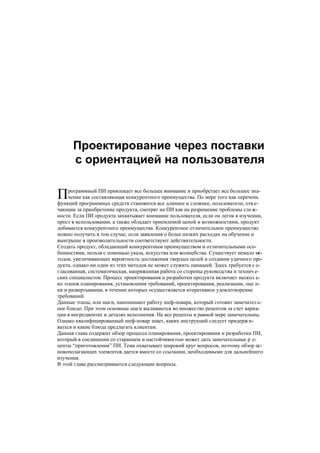 Глава обсуждает проектирование программного обеспечения с акцентом на пользовательском опыте, выделяя важность понимания потребностей пользователей и итеративного подхода в процессе разработки. Она подчеркивает, что создание успешного продукта требует совместных усилий команды и систематической работы над каждой фазой проектирования, начиная от планирования и заканчивая развертыванием. Также рассматриваются основные принципы и подходы, необходимые для достижения конкурентного преимущества в условиях сложности современных программных продуктов.
