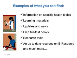 The document covers various aspects of information retrieval, including search engines, effective search techniques, and resources for finding research materials and health information. It highlights platforms like Google Scholar and Research4Life, while also discussing the importance of using correct search strings and Boolean operators. Additionally, it introduces ethical considerations related to computer and information technology and examines the implications of computing practices on society.
