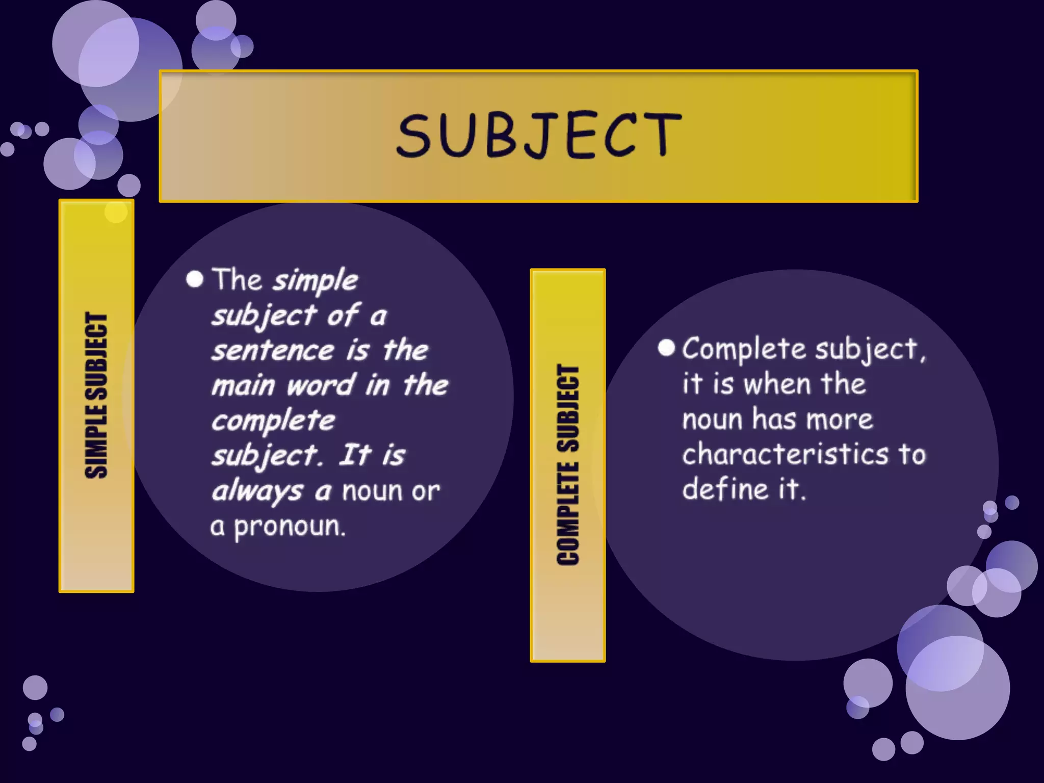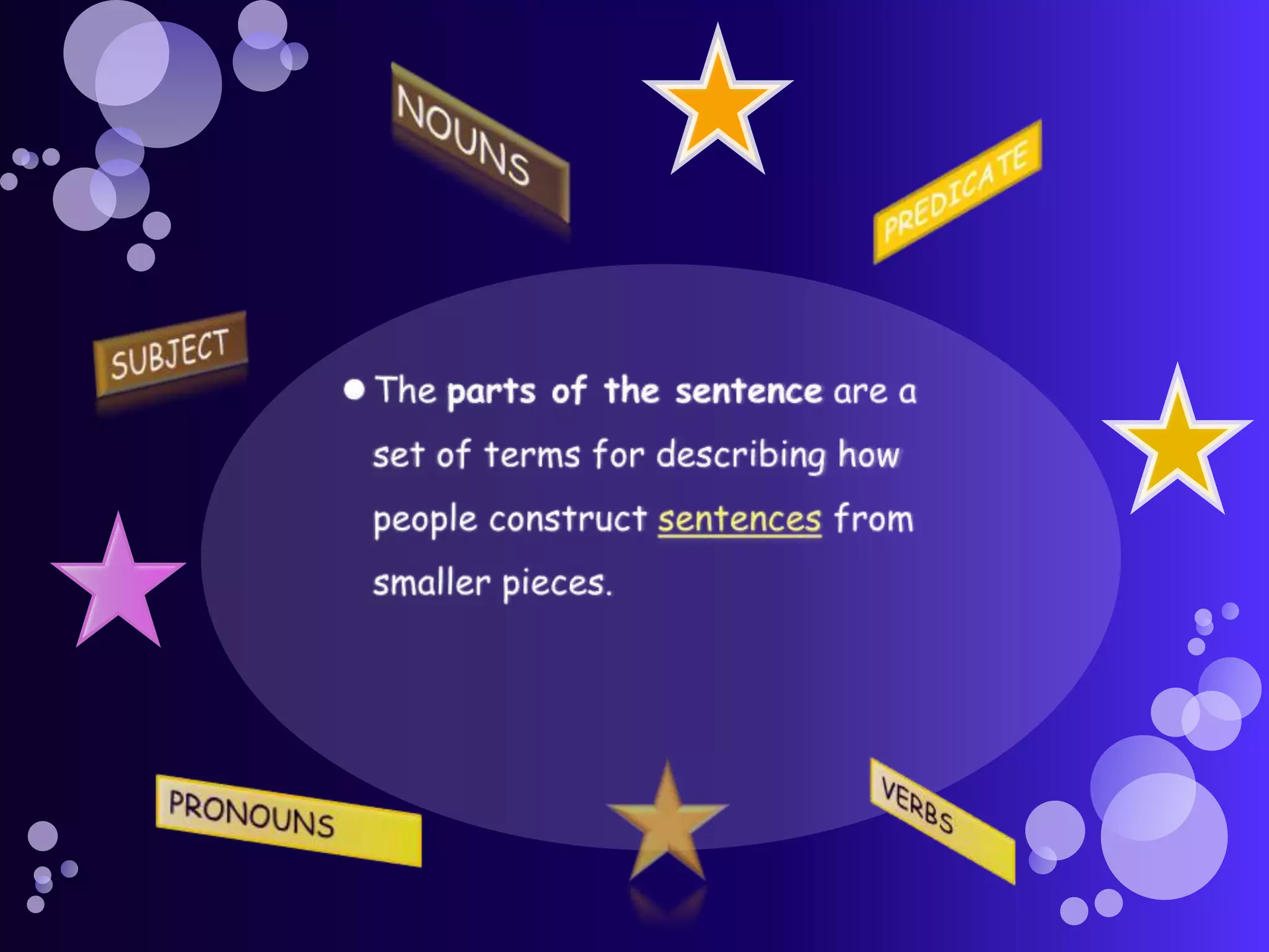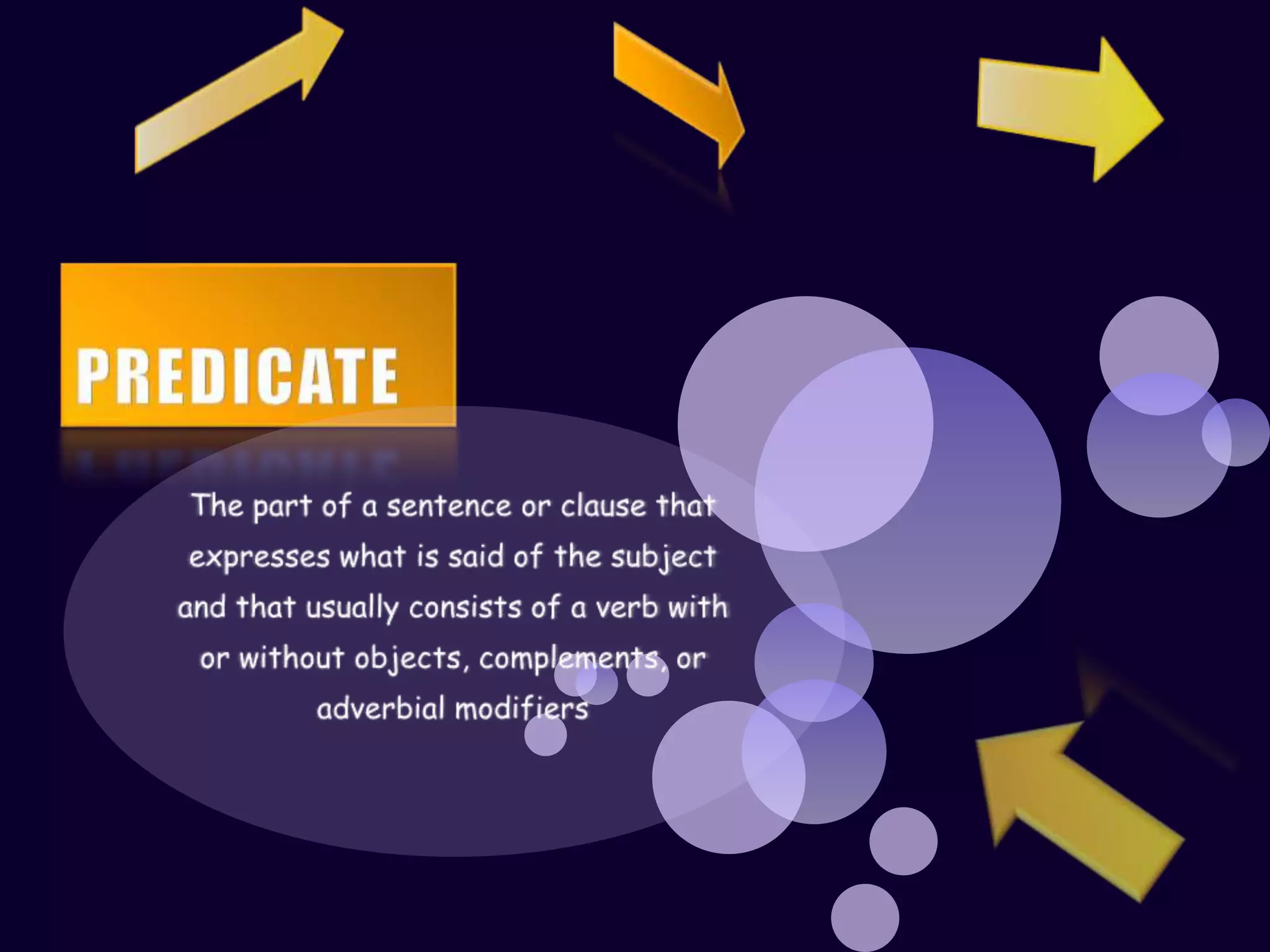 The document discusses the key parts of a sentence including the subject, verb, and objects. It provides examples of simple sentences with subjects performing different verbs such as "I drive my car everyday" and "She runs in the park daily". The verb is described as the most important part of a sentence, expressing what the subject is doing through actions, states of being, or events.