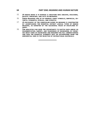 The document discusses the search for meaning across different domains of human inquiry and expression over recent decades. It describes efforts in semantics, analytic philosophy, science, art, literature, psychology, and ethics to better understand and articulate different types of meanings. These include symbolic meanings, empirical meanings discovered by science, aesthetic meanings found in art, synnoetic meanings of personal experience, and ethical meanings regarding values and morality. The document aims to provide a comprehensive overview of the widespread focus on exploring and clarifying human meanings in various fields of thought.