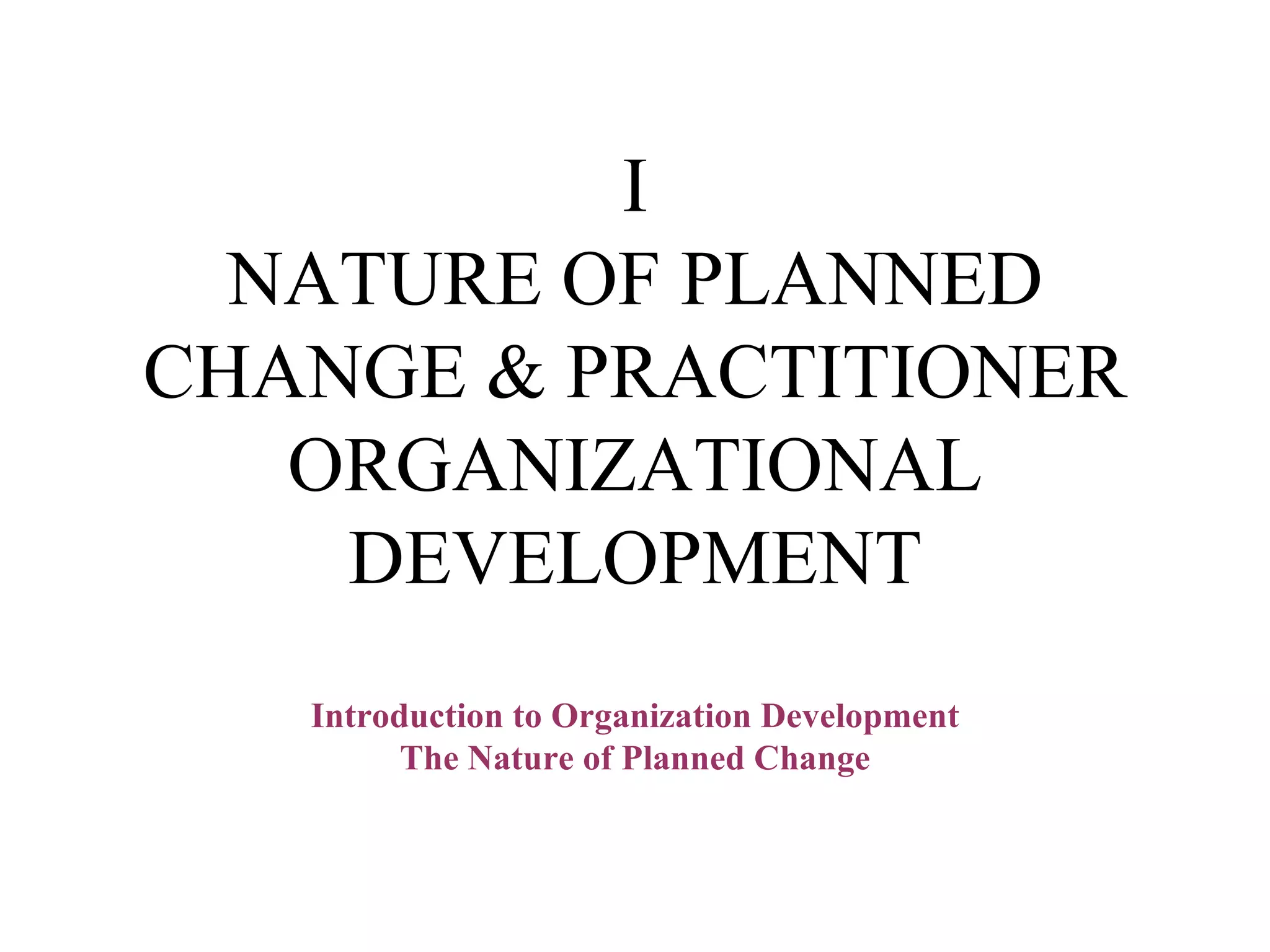 This document discusses organization development (OD) and planned change. It defines OD as a planned process of change using behavioral science. Common models of planned change are presented, including Lewin's three-stage model of change and action research. The roles and competencies of an OD practitioner are outlined, including the demands of consulting and managing ethical dilemmas.