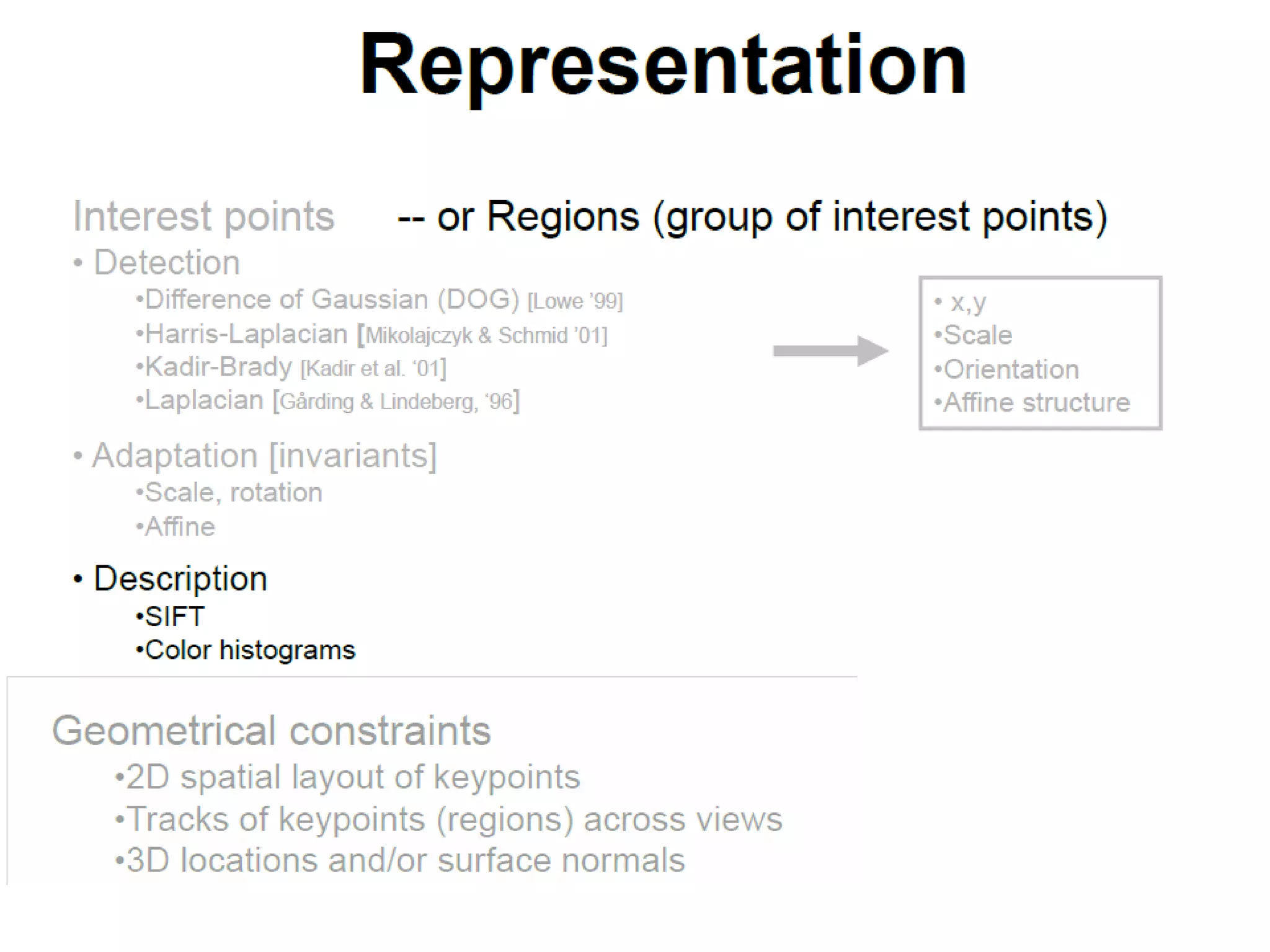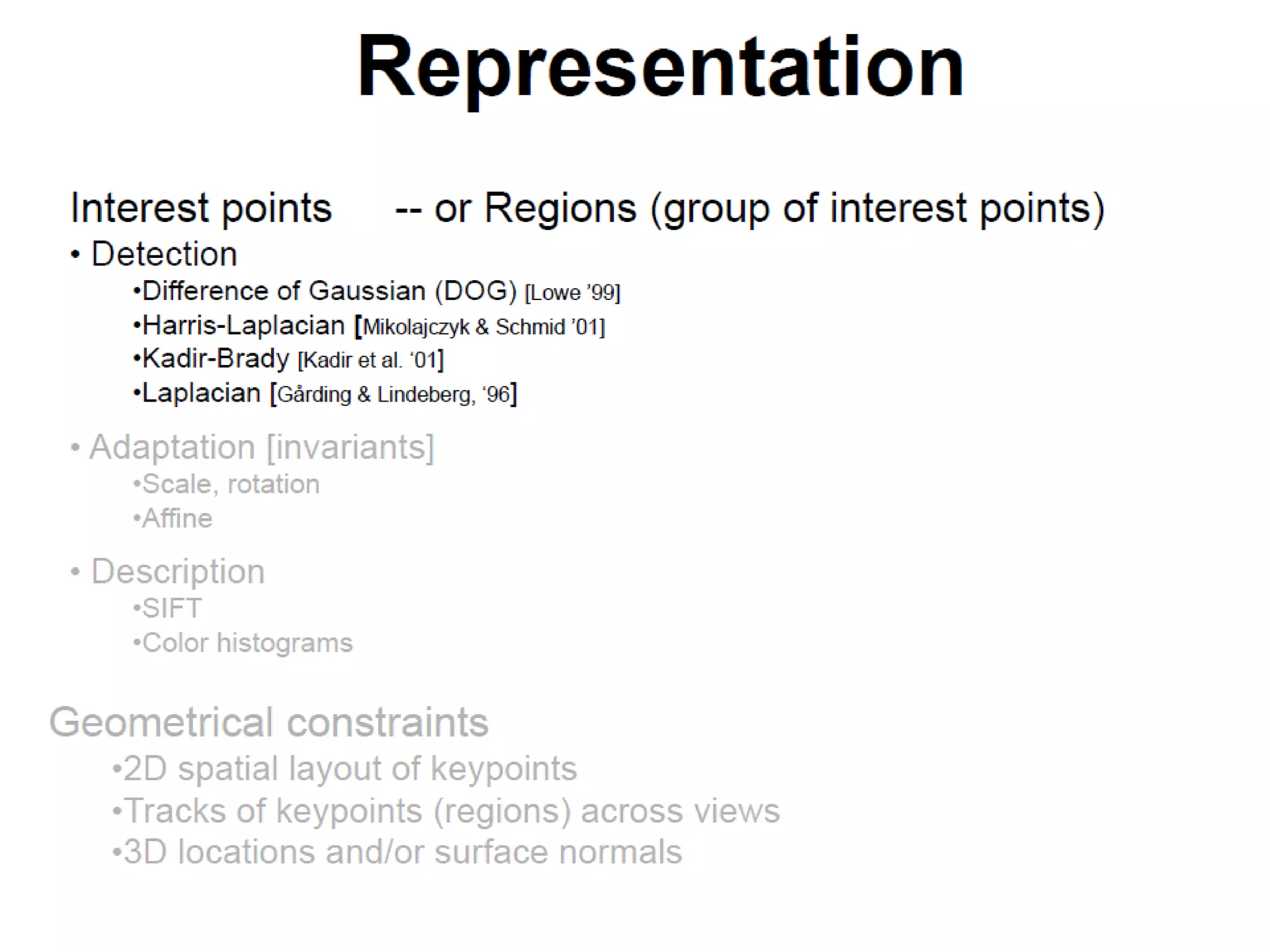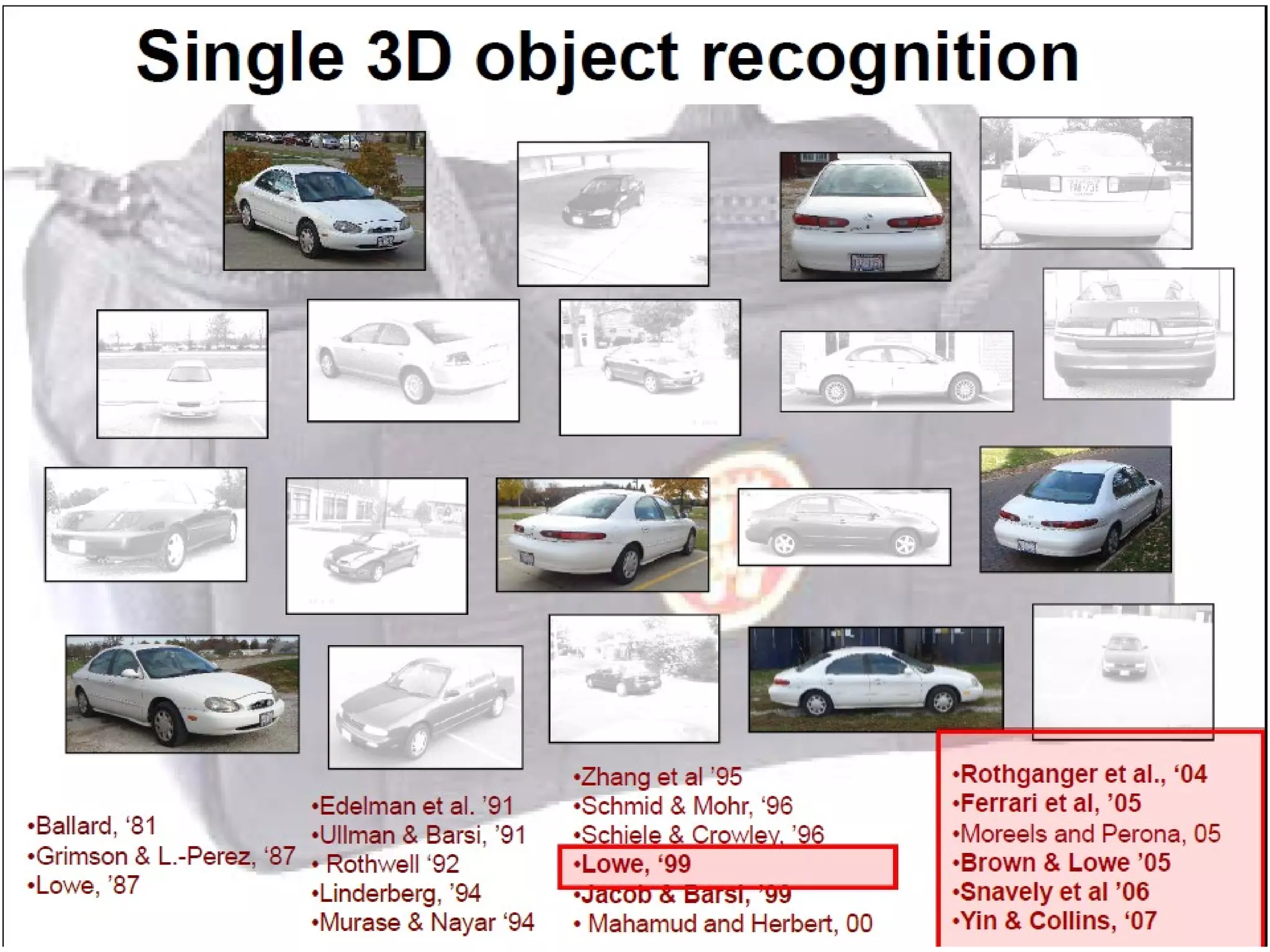 - Lowe's SIFT descriptor for specific object recognition using histograms of edge orientations.