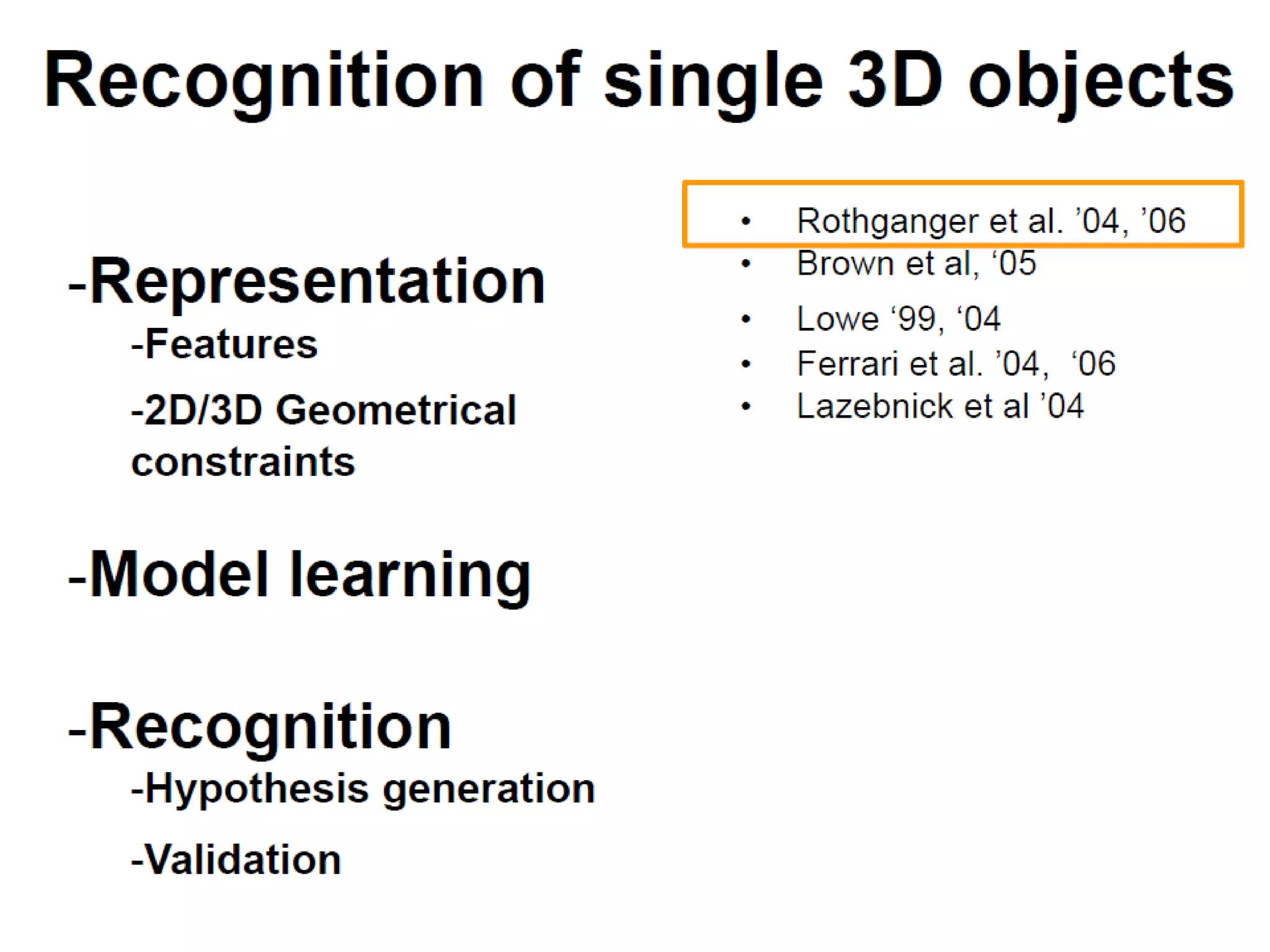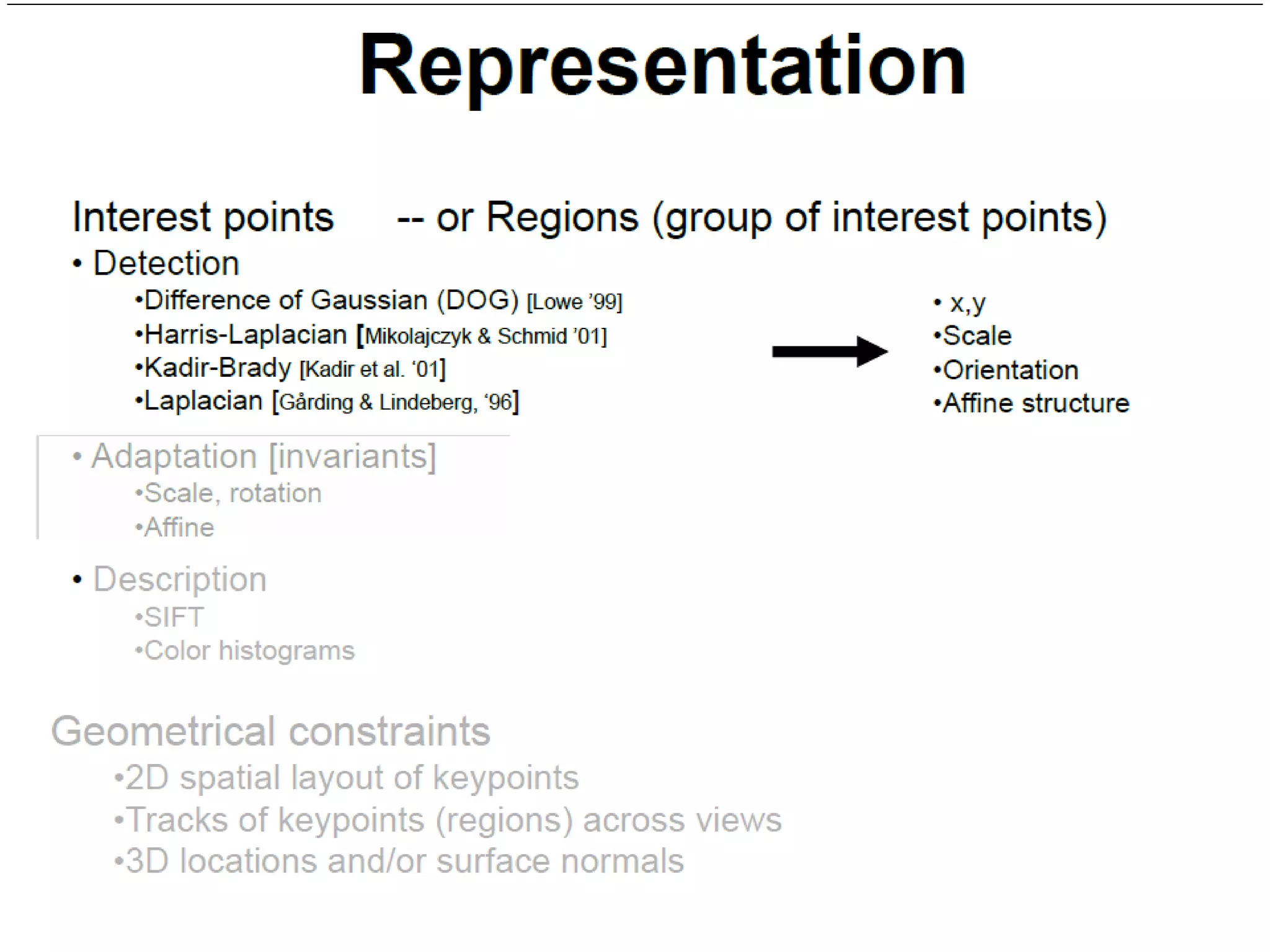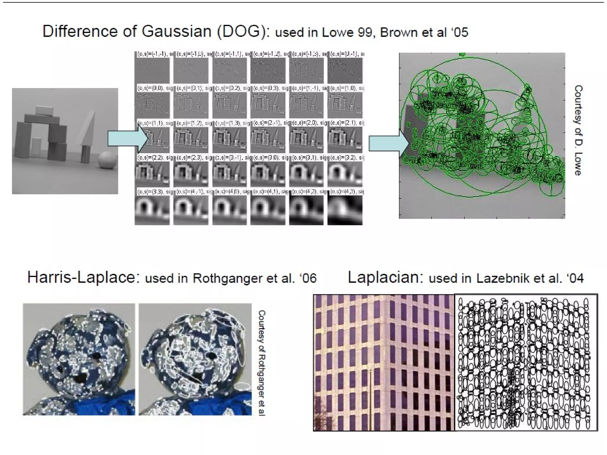 - Lowe's SIFT descriptor for specific object recognition using histograms of edge orientations.
