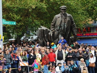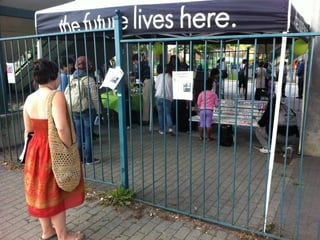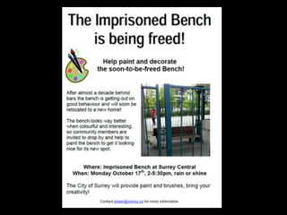The document is a presentation by Jim Diers focused on having fun in the context of community engagement, specifically relating to the Fremont neighborhood in Seattle and Surrey, British Columbia. The content suggests fostering enjoyable experiences as part of community initiatives. Contact information for the presenter is also provided.