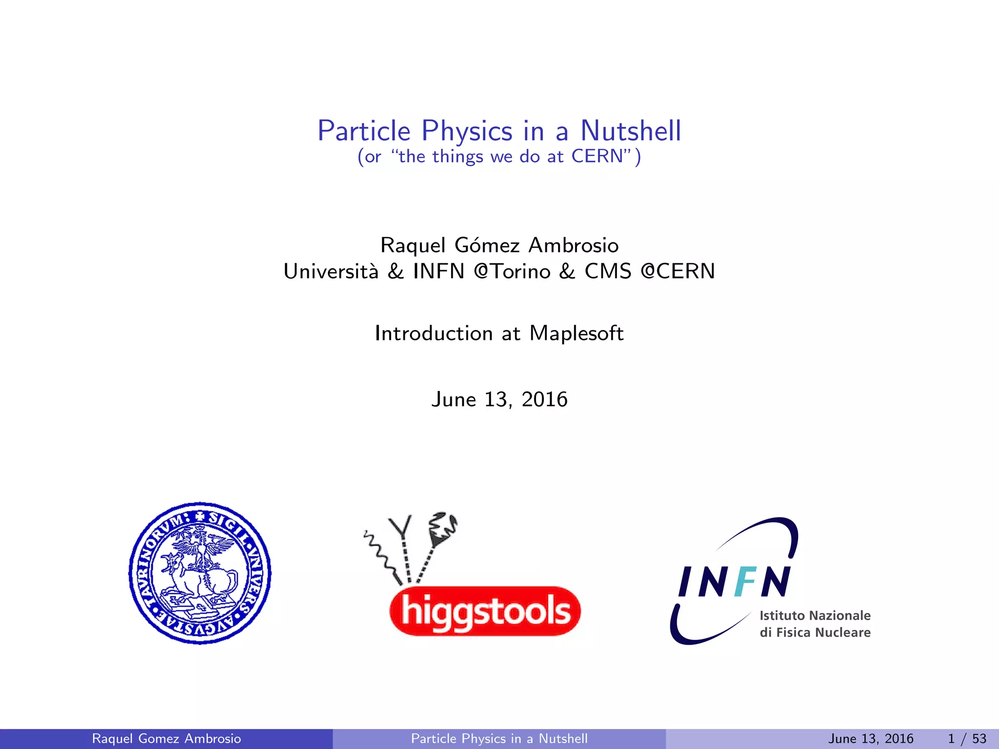 The document provides an overview of particle physics, particularly focusing on the significance of the Higgs boson and its discovery at CERN. It traces the history of atomic theory, the development of the Standard Model, and introduces key concepts and significant figures in the field, including Murray Gell-Mann and the quark model. Furthermore, it discusses the experimental methods used to study particle interactions and the collaboration between theorists and experimentalists.