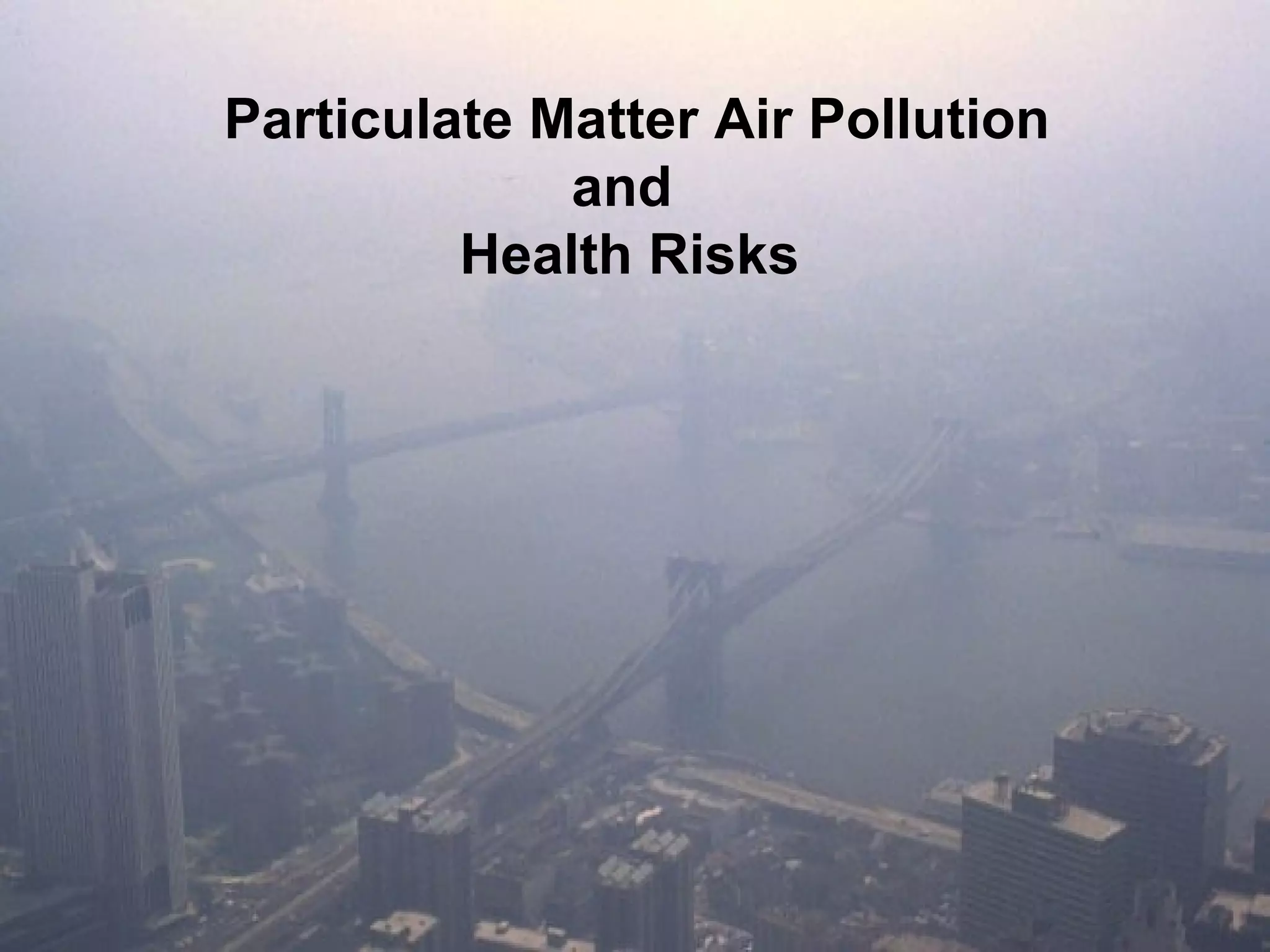 This document summarizes particulate matter (PM) air pollution and associated health risks. PM comes from natural and human-made sources and varies in size. Small PM can travel deep into lungs. PM is regulated as a criteria air pollutant due to links to premature death, heart and lung disease. Factors like weather, topography and inversions affect PM concentrations. Modern epidemiological studies use monitoring and statistical methods to establish relationships between PM exposure and health outcomes. Research priorities aim to better characterize sources, exposures, health impacts and susceptible groups.