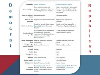This document provides information about political parties and elections in the United States. It discusses the roles and functions of political parties, the two-party system, and third parties. It also describes the different types of elections in the US including primaries, general elections, and initiatives and referendums. Presidential elections are summarized, outlining the nomination process, conventions, electoral college and terms limits. Congressional and other public office elections are also briefly covered.