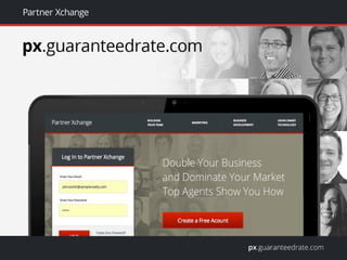 This document summarizes the new and improved Partner Xchange program focused on helping real estate agents double their business. It provides access to a video library of interviews with top agents giving best practice advice, industry resources and supporting apps. The program also includes social media support and tips, coaching webinars, an exclusive magazine and new real estate focused content and apps. It maintains all features from the prior version and makes agent tools like loan monitoring and marketing flyer creation easier to access.