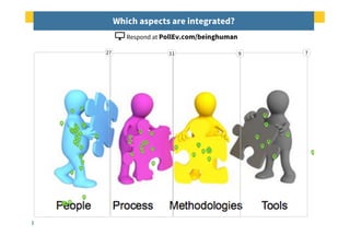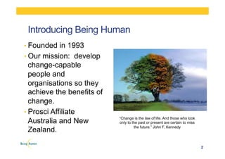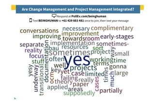 The document presents insights from Prosci's webinars highlighting the collaboration between project managers and change managers to ensure successful project outcomes. It emphasizes the importance of integrating change management with project management, detailing strategies for building buy-in and enhancing the adoption of change. Key points include the need for effective communication, teamwork, and utilizing various Prosci tools to facilitate this partnership.