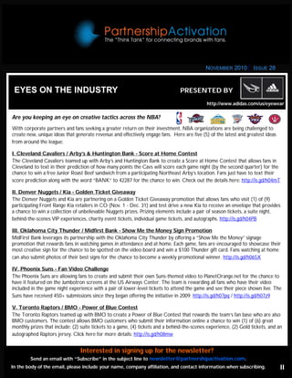 Nike created a "Liveboard" at an Australia vs. New Zealand soccer match that allowed the company to post messages in real-time during key moments of the game to promote its "Write the Future" campaign. The messages were seen by over 55,000 fans at the game. The tactic allowed Nike to capitalize on moments during the match and engage fans. The newsletter discusses other sponsorship tactics and ideas from sports properties around the world.