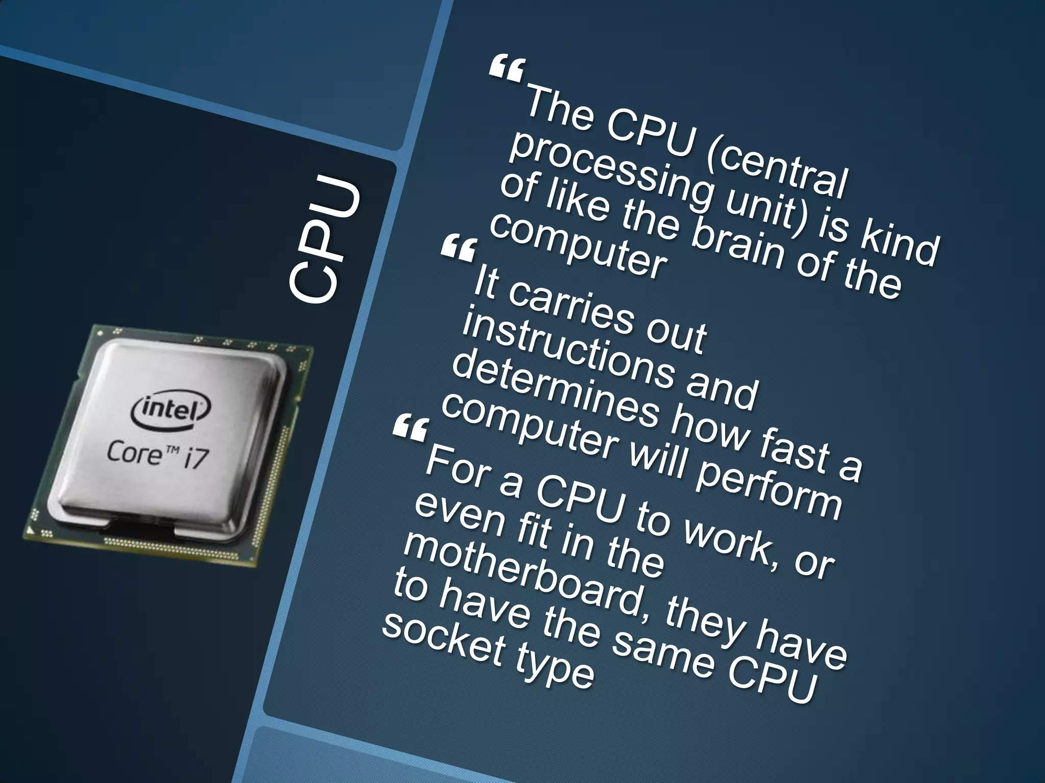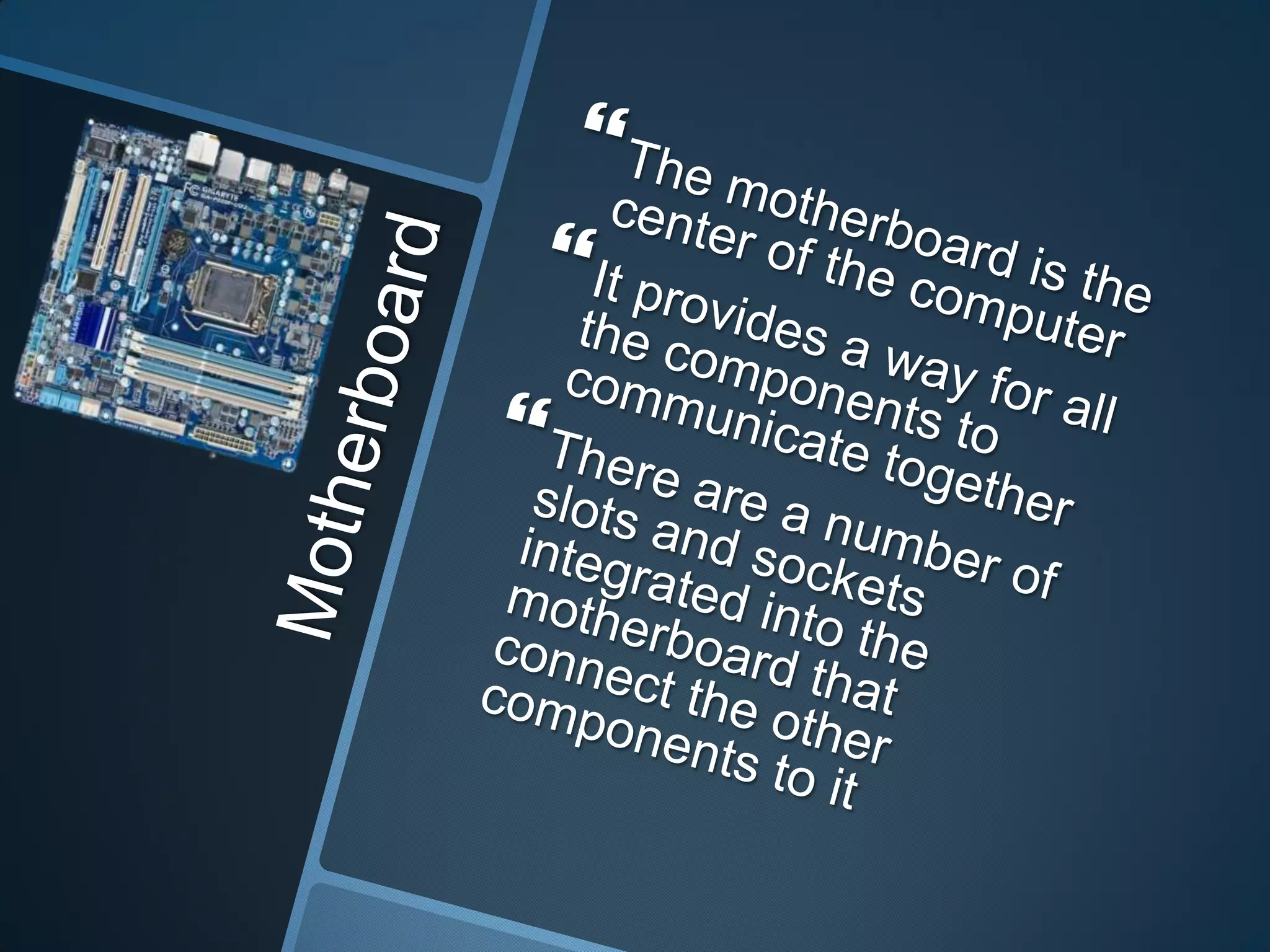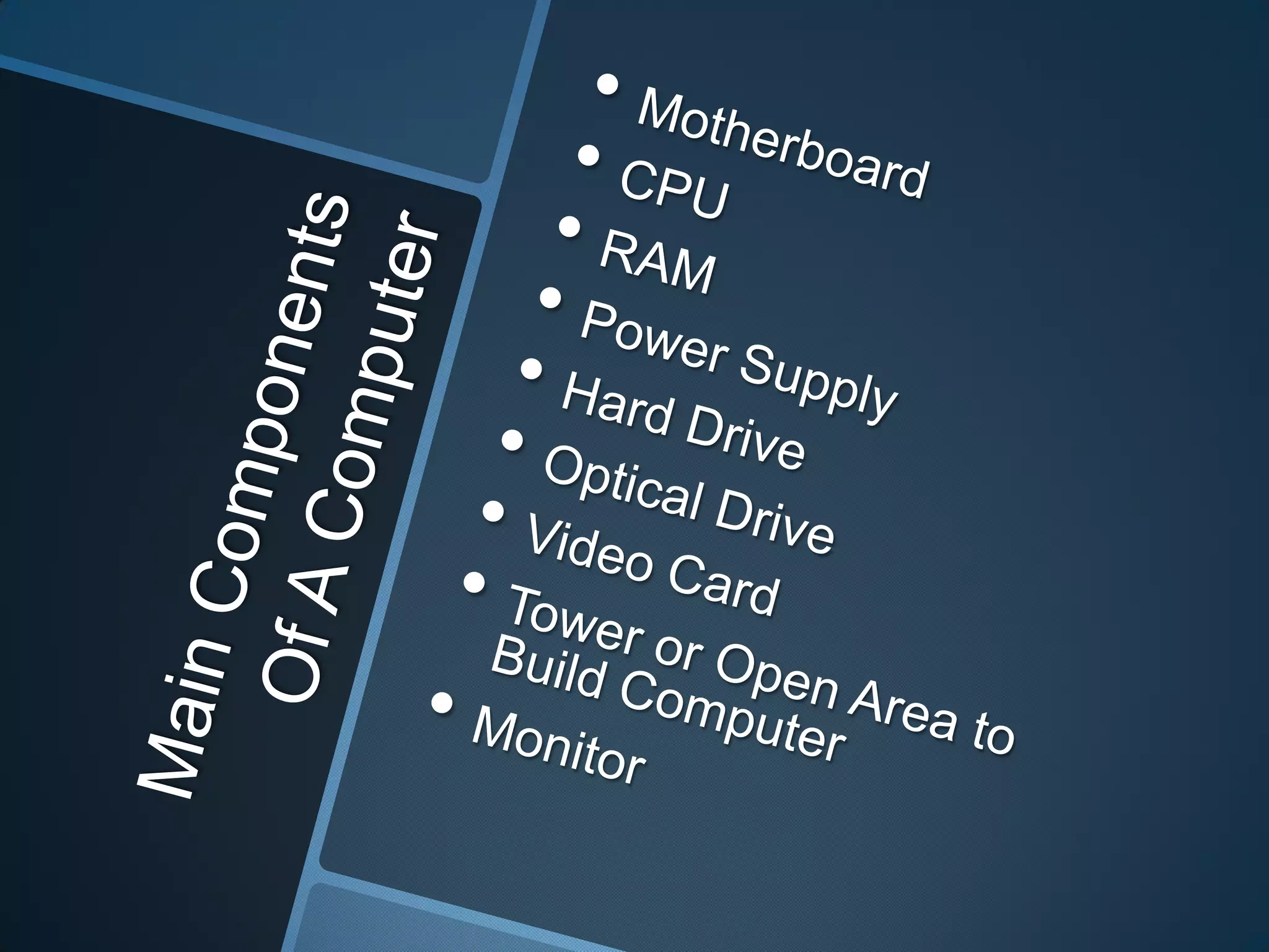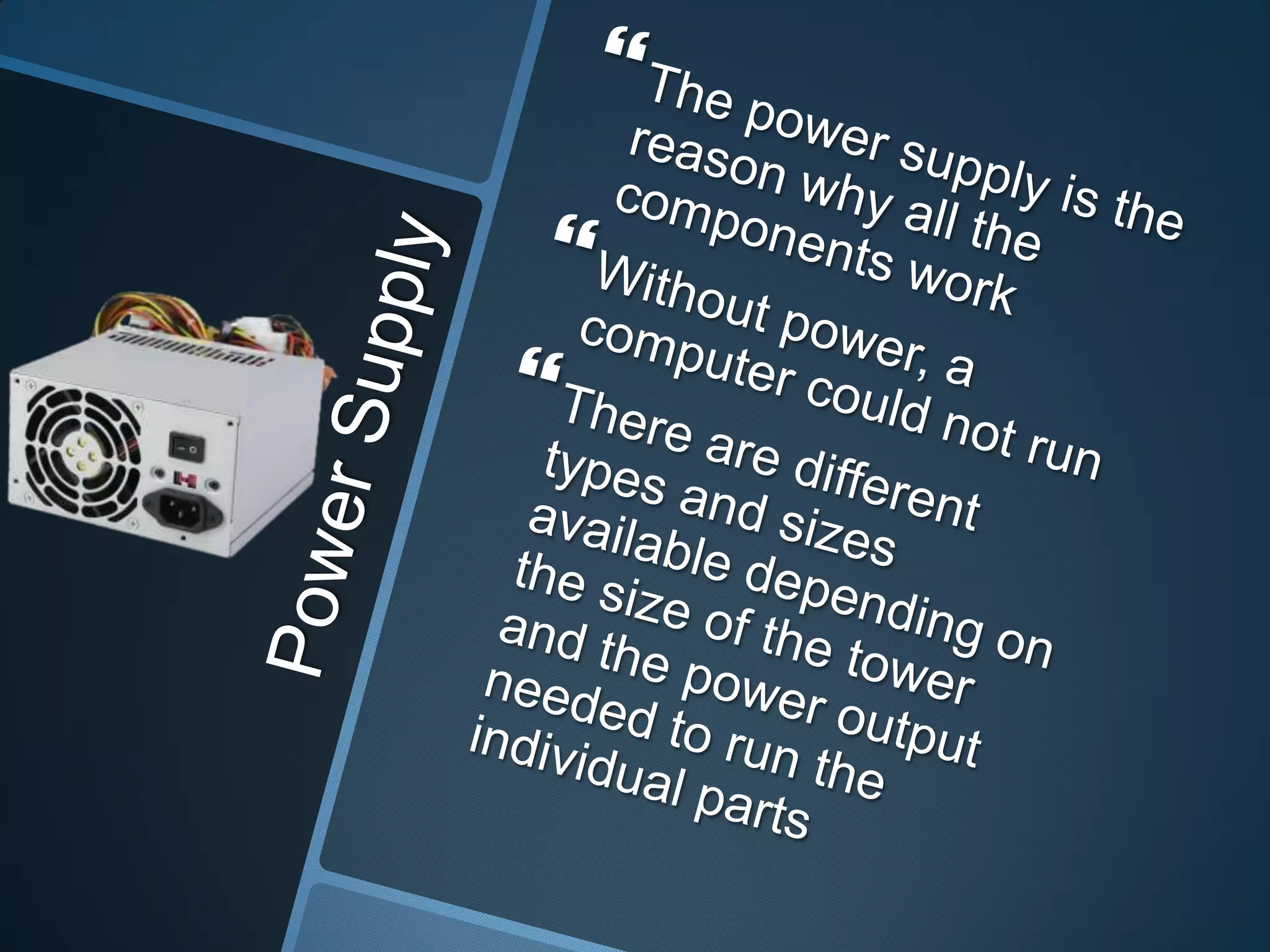 This document describes computer components. It mentions a computer being built into a drawer, along with a hard disk drive and solid state drive, which are types of storage drives used in computers.