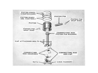 - The cylinder block and head contain the pistons, valves, spark plugs, and other components.