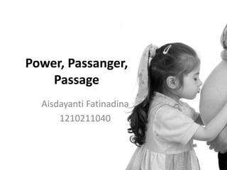 Dokumen ini membahas penyebab dan penanganan persalinan yang abnormal atau sulit, termasuk faktor power, passenger, dan passage yang mempengaruhi proses persalinan. Gejala pada ibu dan janin serta metode diagnosis juga dijelaskan, bersama dengan penanganan umum dan khusus berdasarkan penyebab yang diidentifikasi. Tindakan medis seperti pemberian oksitosin dan intervensi bedah seperti seksio sesarea disebutkan sebagai solusi untuk mengatasi komplikasi persalinan.
