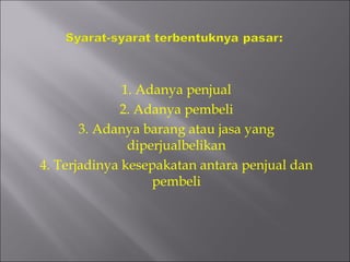 3. Pasar berfungsi dalam distribusi barang, pembentukan harga, dan prom