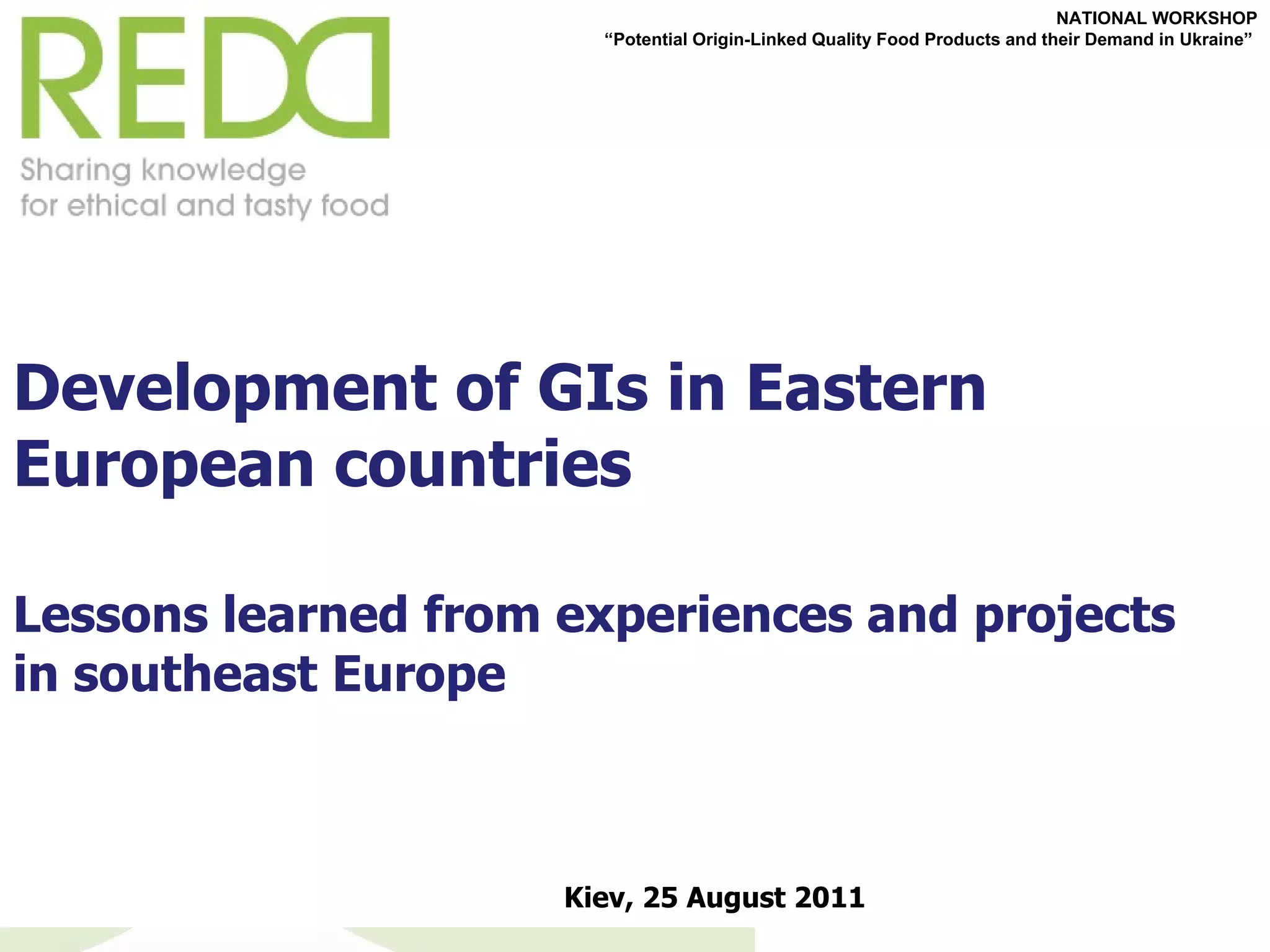 1. The document discusses lessons learned from experiences with geographical indications (GIs) in Eastern European countries, particularly former Yugoslav states.