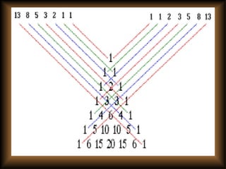 The document discusses Pascal's Triangle, its construction, and its mathematical properties, including patterns and connections to Fibonacci numbers. It provides a brief biography of Blaise Pascal, highlighting his early interest in geometry, the invention of a mechanical calculator, and the significance of his triangle in mathematics. The document concludes with Pascal's death at age 39 due to illness.