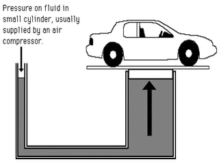 Pascal's principle states that when force is applied to a confined liquid, the change in pressure is transmitted equally to all parts of the fluid. A force applied to one section of an enclosed liquid at rest will be transferred to the entire liquid with the same amount of force. Hydraulic systems use this principle - a force applied to one piston increases the fluid pressure throughout the fluid, so if the second piston has a larger surface area, the force is multiplied.