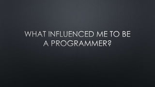 A short presentation on my personal experiences that lead me into becoming a software developer