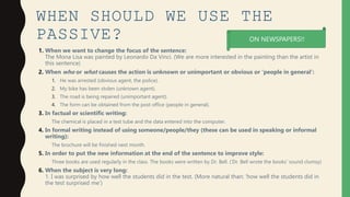 The document discusses four types of passive voice: