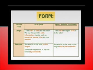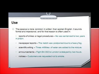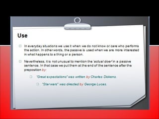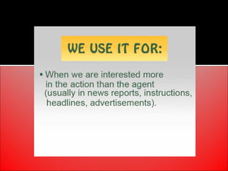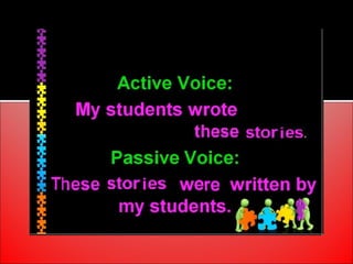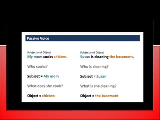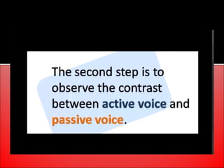 The document provides an overview of active and passive voice in English grammar, defining both and explaining their functions. It includes examples, exercises, and guidelines on how to recognize and use each voice appropriately. The lesson aims to equip learners with the ability to differentiate between active and passive voice, as well as apply their knowledge in practice.