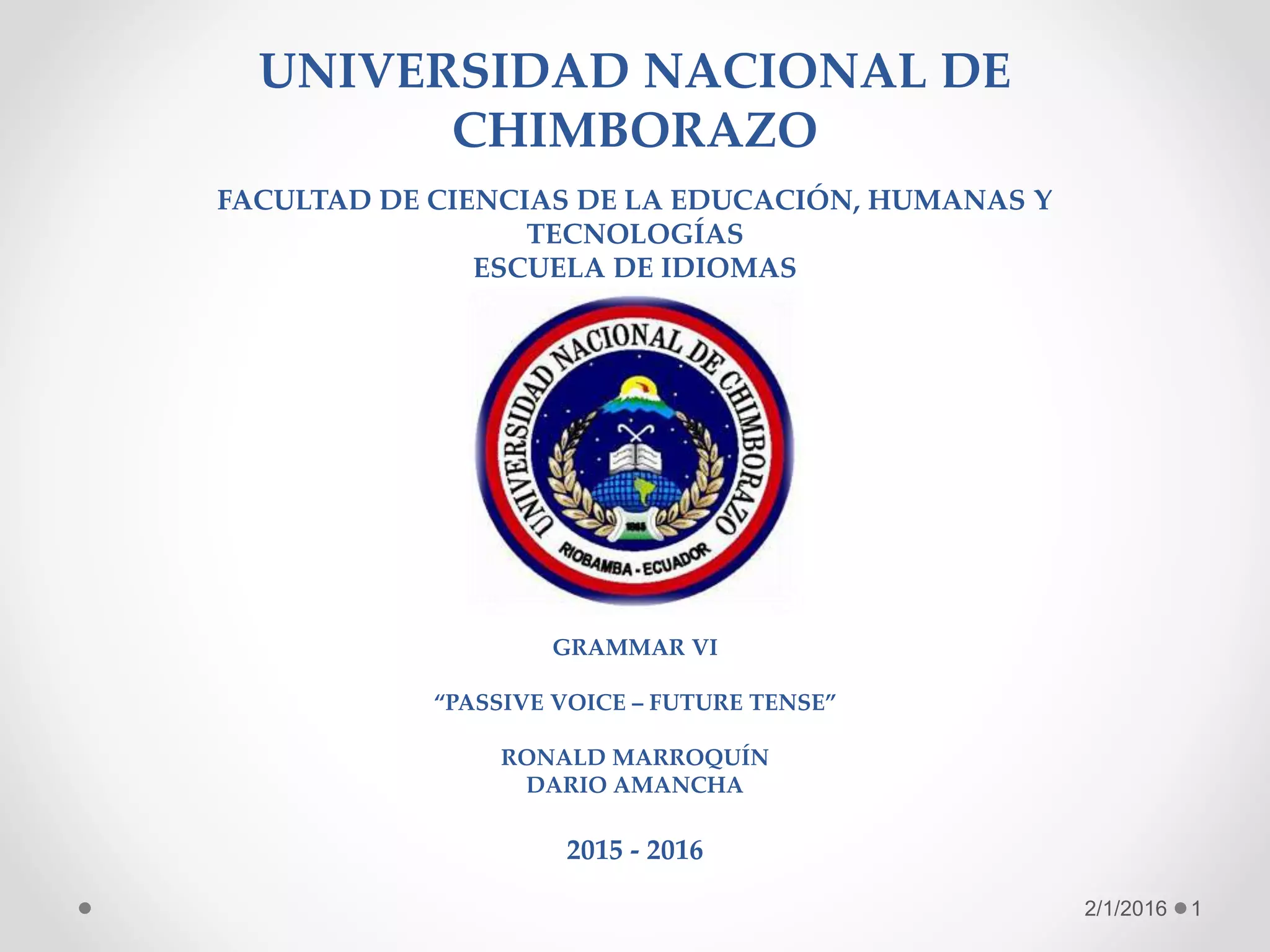 This document discusses the future passive voice in English grammar. It begins by defining the structure of the future passive voice, which uses "will/shall + be + past participle." It provides examples of changing sentences from active to passive voice in the future tense. The document then covers forming affirmative, negative, and interrogative sentences in the future passive voice. It concludes with exercises changing sentences from active to passive voice in the future tense.