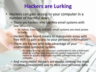 Hackers use various methods to gain access to personal information, so it's important to use strong passwords. Some key tips for strong passwords are to make them unique for each account, at least 8 characters long, change them every 3 months, and mix different character types like uppercase letters, numbers, and symbols. Following these password tips can help protect your information from being hacked.