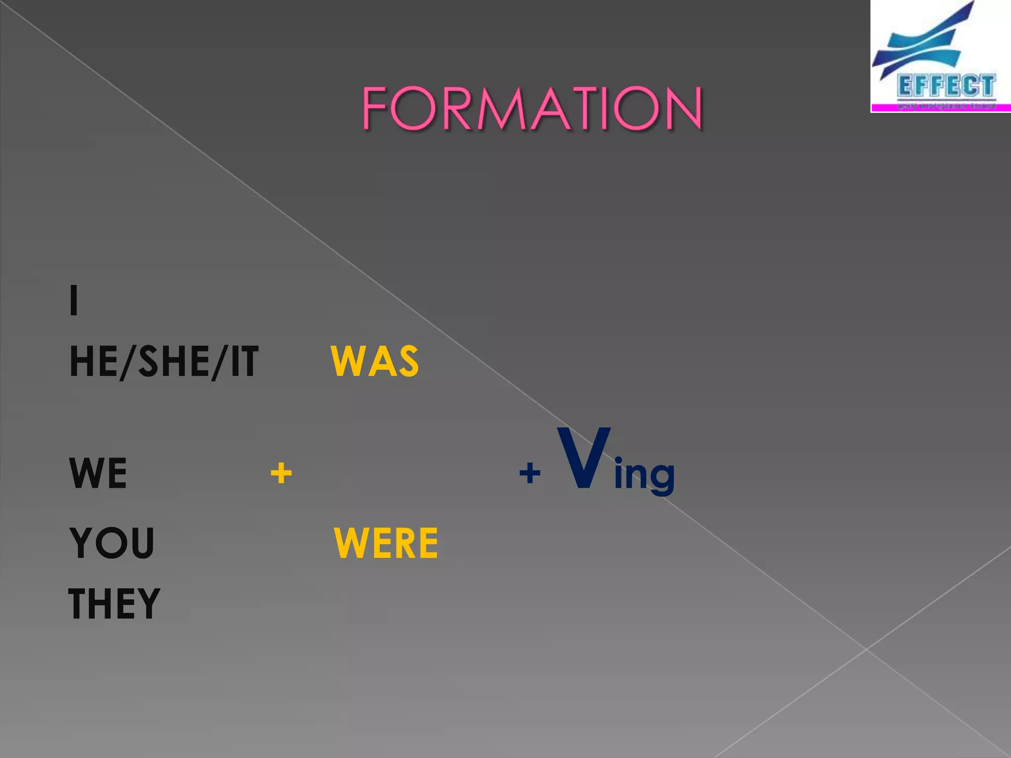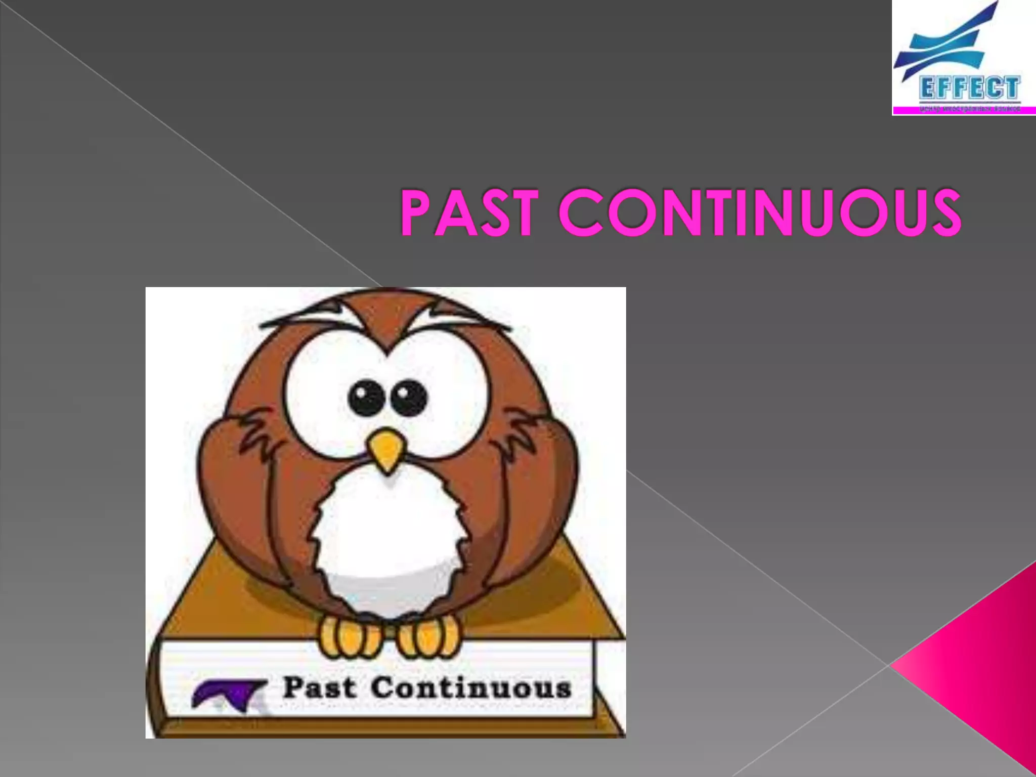 The document discusses rules for forming the present participle (-ing form) of verbs in English. It also discusses the past continuous tense and how it is used to describe actions that were ongoing at a stated time in the past or that were interrupted by other past actions. Examples are provided to illustrate the formation of present participles from different verb stems and the use of the past continuous tense in sentences.
