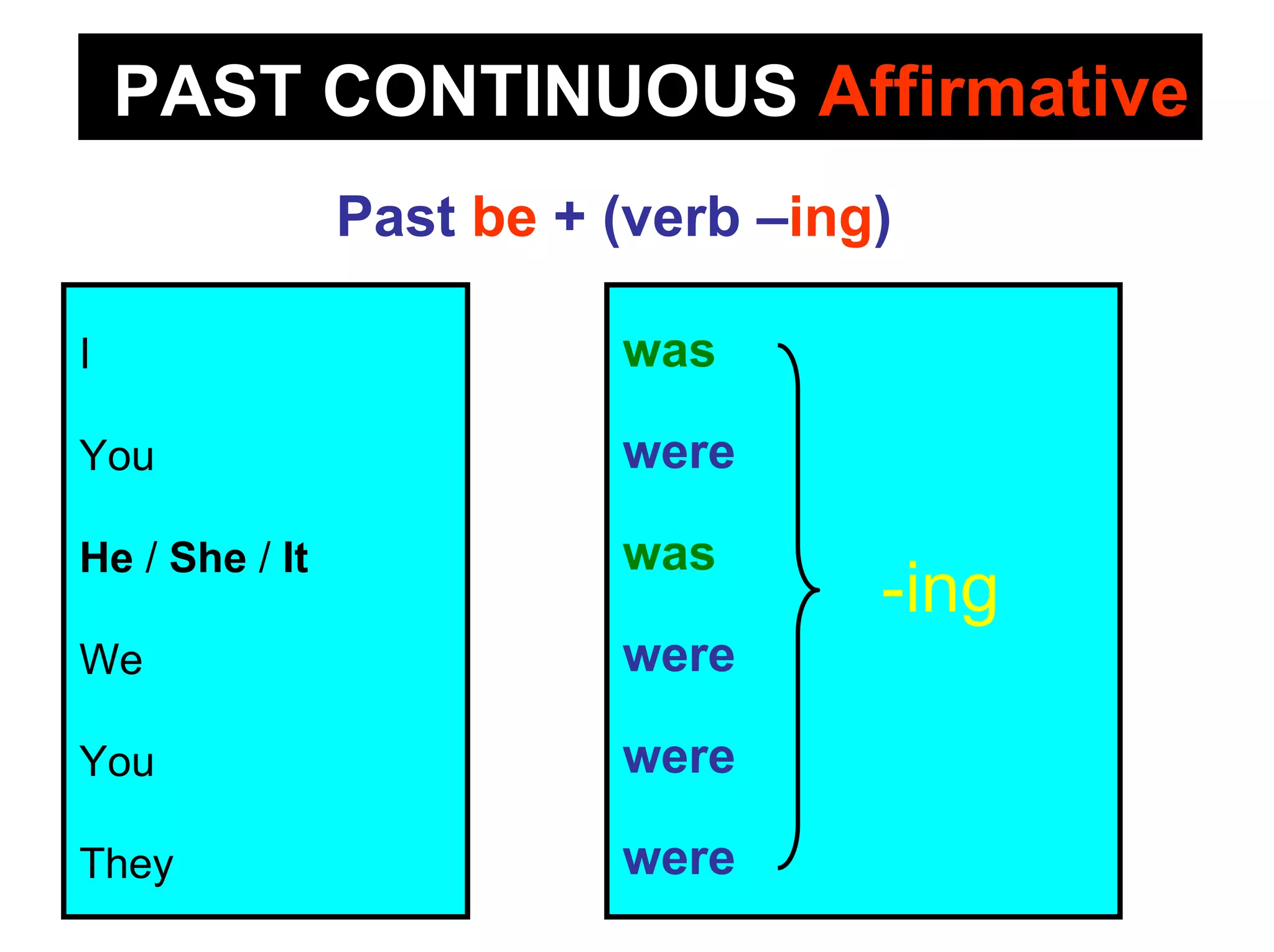 This document provides instruction on forming sentences in the past continuous tense in English. It covers the affirmative, negative, and interrogative forms of the past continuous using the verbs "to be" and an -ing verb. Examples are provided to demonstrate each form with different subjects performing various actions. Short answers to interrogative examples are also demonstrated.