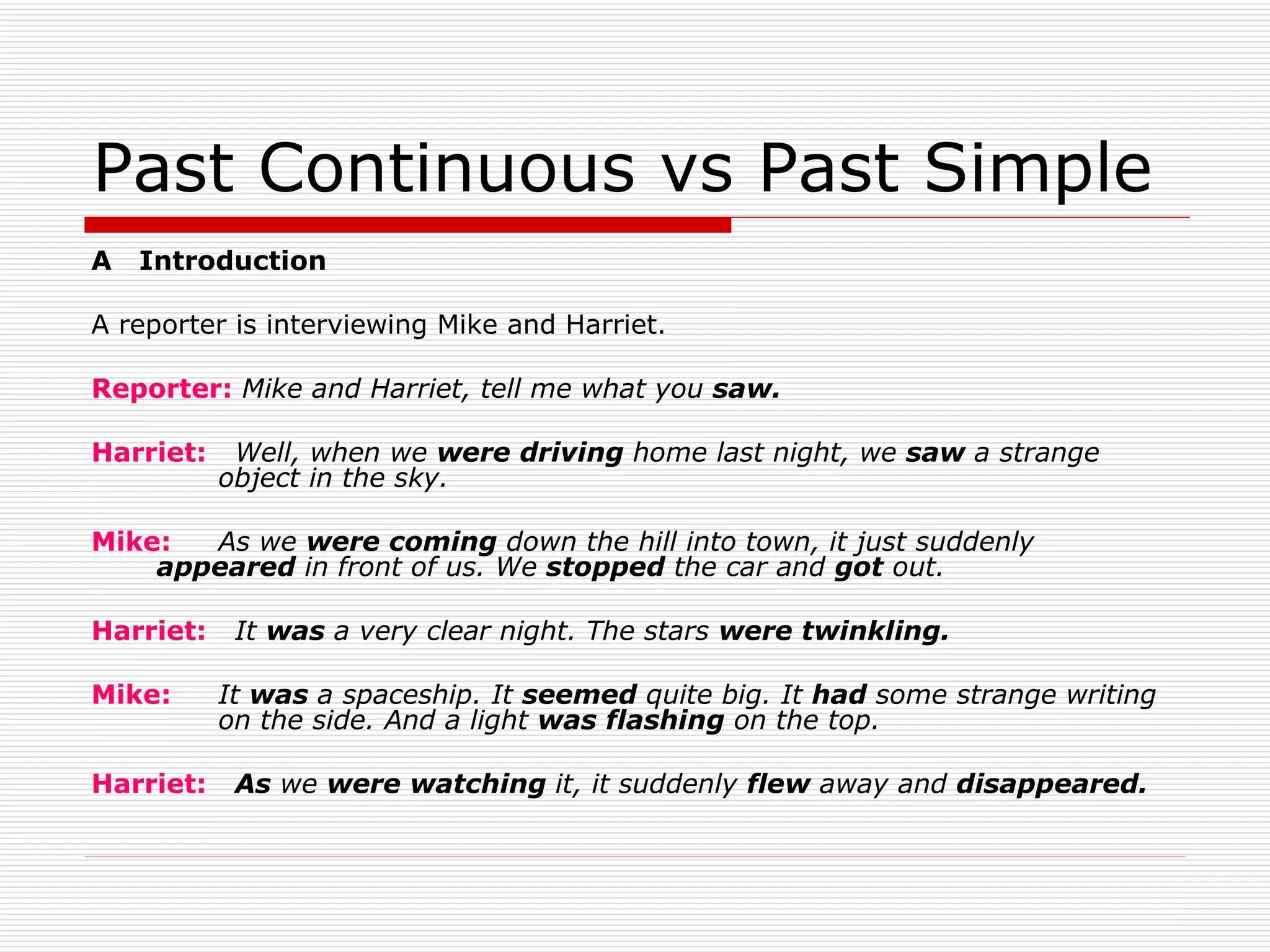 Harriet and Mike saw a strange object in the sky while driving home one night. As they were coming down a hill into town, a large object with strange writing suddenly appeared in front of them. They stopped the car and got out to watch. While they were watching it, the object suddenly flew away and disappeared.