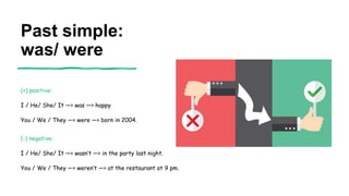 The document provides information about using the past simple tense in English. It discusses: