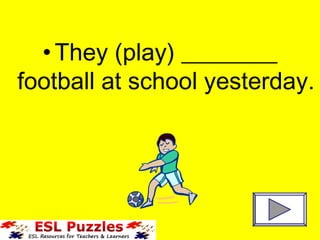 The document provides examples of verbs in the past simple tense. It lists common verbs like "play", "watch", "speak", "go", "read", "sing", "sleep", "study", and "take" followed by blanks to be filled in with the past tense form of the verb. These examples can be used to practice conjugating regular and irregular verbs into the simple past tense form.
