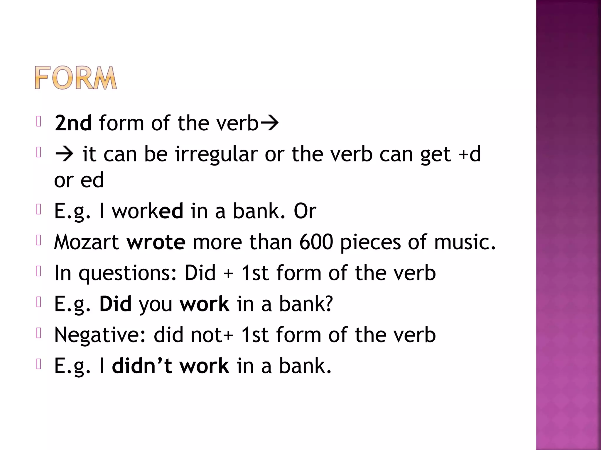This document provides information about using the past tense in English. It discusses how the past tense is formed using the second form of verbs, which can be irregular or add -ed or -d. Examples are given of using the past tense in sentences and questions. The past tense expresses finished past actions and past habits. Ways to indicate when past events occurred, such as using words like "ago", "yesterday", and dates, are also outlined. The past forms of the verb "to be", which are "was" and "were", are defined, along with their negatives.