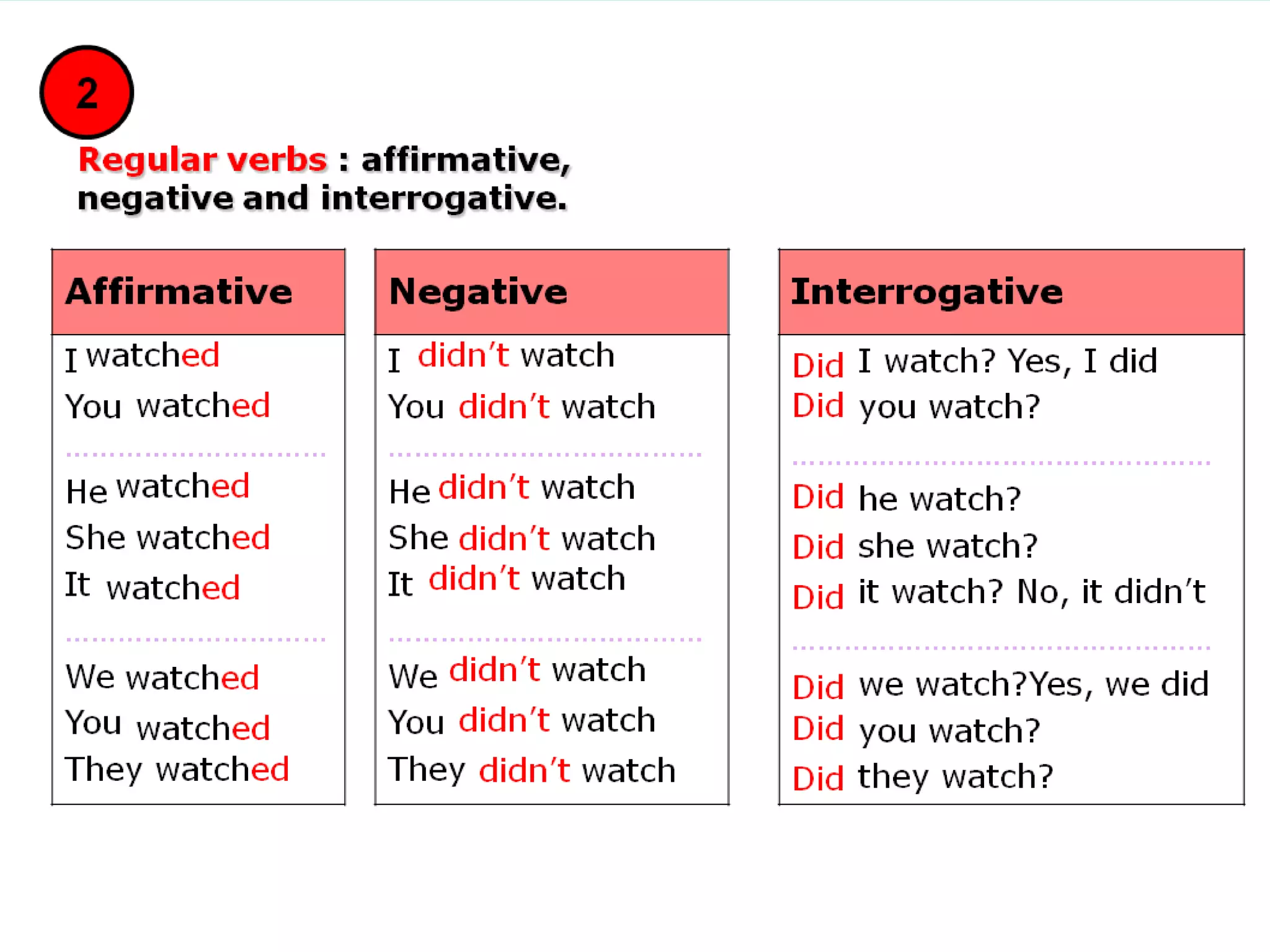 The document provides examples of using regular and irregular verbs in the simple past tense. It begins by giving examples of the verb "to be" in the past tense. It then provides lists of regular verbs and examples of their past tense forms by adding "-ed". It also discusses irregular verb forms and provides examples of common irregular verbs and their past tense forms. The document aims to teach verb conjugation and usage in the simple past tense through examples, exercises, and activities for students to practice.