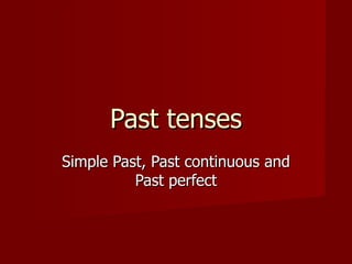 1) The document discusses different past verb tenses in English including the simple past, past continuous, past perfect, and past perfect continuous.