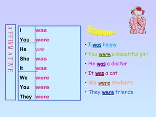 The document provides information about past simple verbs in English, including affirmative and negative forms as well as interrogative examples. It lists common regular and irregular past tense verbs such as go/went, have/had, and see/saw. Activities are included to practice putting verbs in the past tense.
