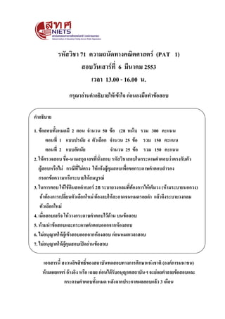 รหัสวิชา 71 ความถนัดทางคณิตศาสตร หนา 2