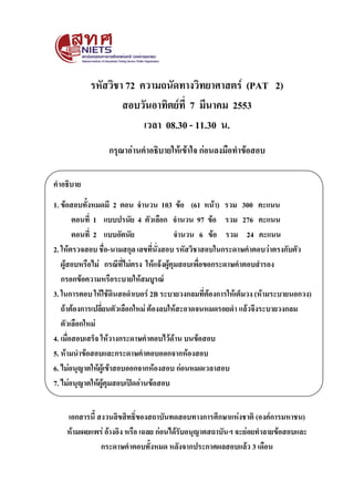 รหัสวิชา 72 ความถนัดทางวิทยาศาสตร์ หน้า 57