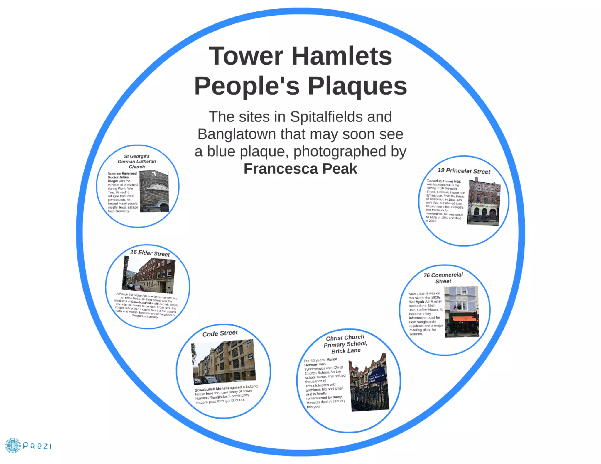 The sites in Spitalfields and Banglatown that may soon see a blue plaque, photographed by Francesca Peak