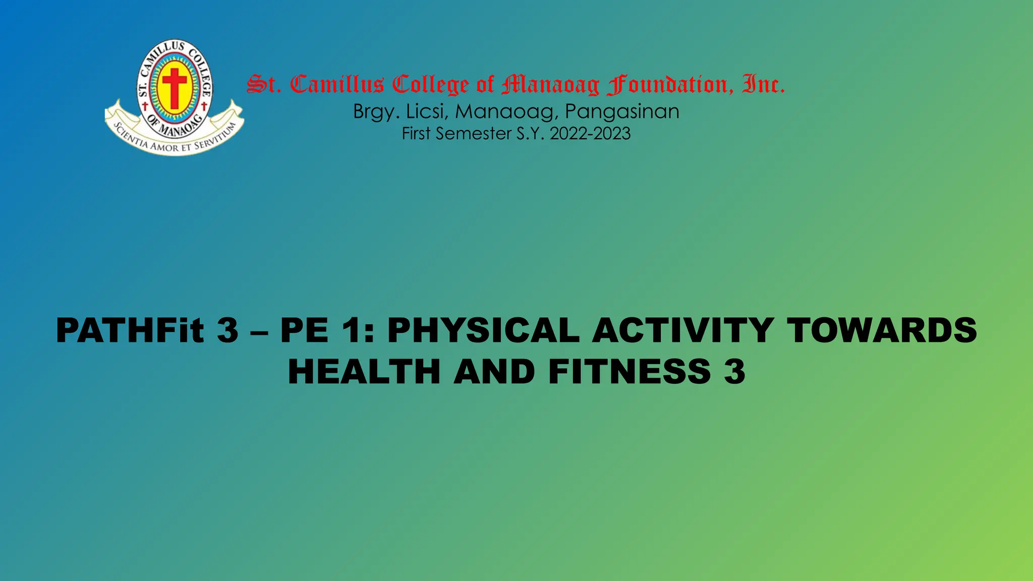 PATHFit 3 – PE 1: PHYSICAL ACTIVITY TOWARDS HEALTH AND