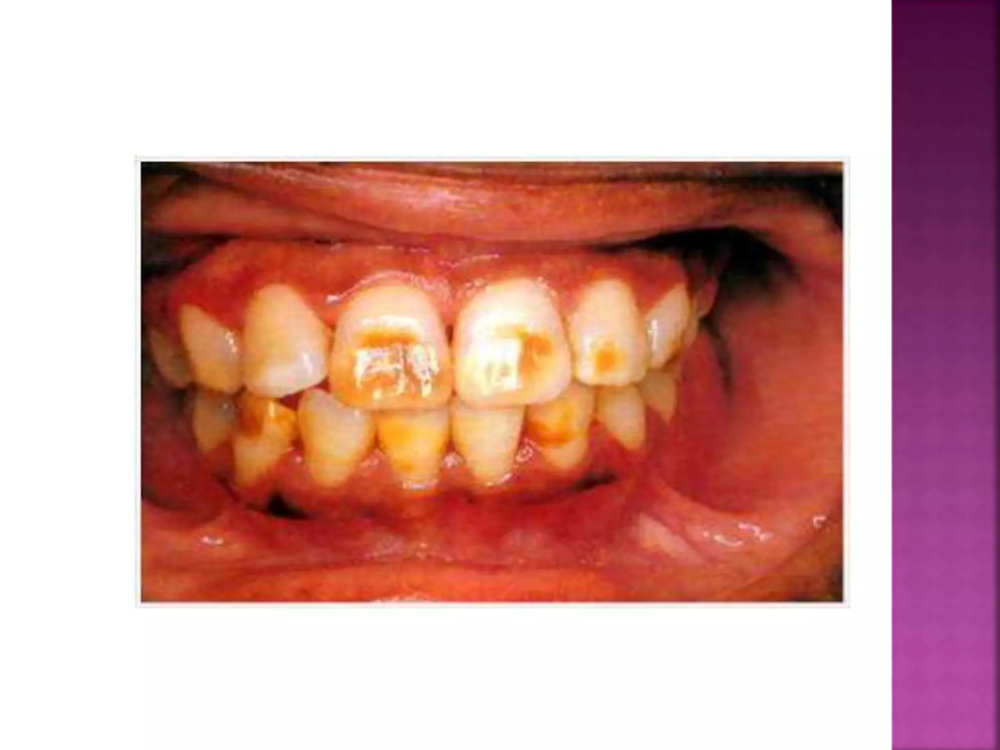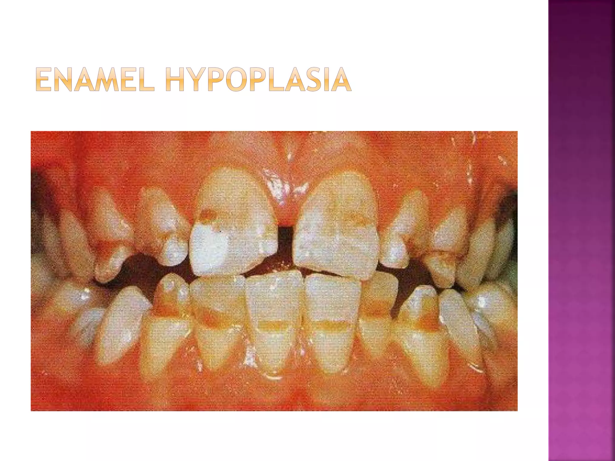 The document discusses various causes of tooth discoloration and abnormalities in tooth development and structure. It describes developmental disturbances that can result in discoloration, such as amelogenesis imperfecta or dental fluorosis. Intrinsic pigments from conditions like jaundice or blood disorders can also cause tooth discoloration. Abnormalities in tooth number, size, shape, structure, and enamel formation are discussed in relation to hereditary and environmental factors.