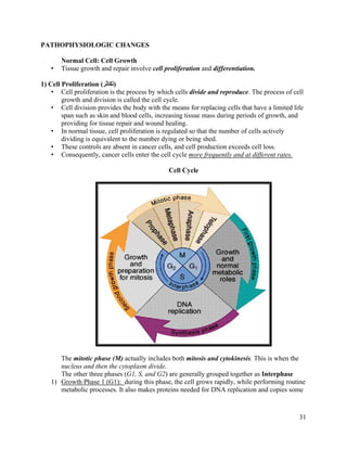 Cancer results from abnormal cell growth and differentiation. The four main steps in carcinogenesis are initiation, promotion, progression, and metastasis. Initiation involves DNA damage from factors like chemicals, radiation, or viruses. Promotion enhances the growth of mutated cells through exposure to factors like hormones or food additives. Progression refers to further growth and spread within the tissue. Metastasis is the spread of cancer to other organs. Genetic mutations in oncogenes, tumor suppressor genes, and DNA repair genes can drive uncontrolled cell growth. Cancer manifests through local effects on tissues and systemic effects like fatigue, weight loss, and abnormal hormone production. Tumor markers are substances released by cancer cells or in response to cancer that can