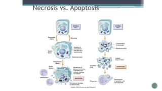 The document provides a comprehensive overview of cellular structures, functions, and various biological processes involving cell injury, inflammation, and immune responses. It discusses cellular components such as the nucleus, mitochondria, and ribosomes, as well as processes like apoptosis, necrosis, and the immune response, including types of hypersensitivity reactions. Additionally, it covers various diseases, infections, and their mechanisms, alongside descriptions of healing processes and immune system functions.